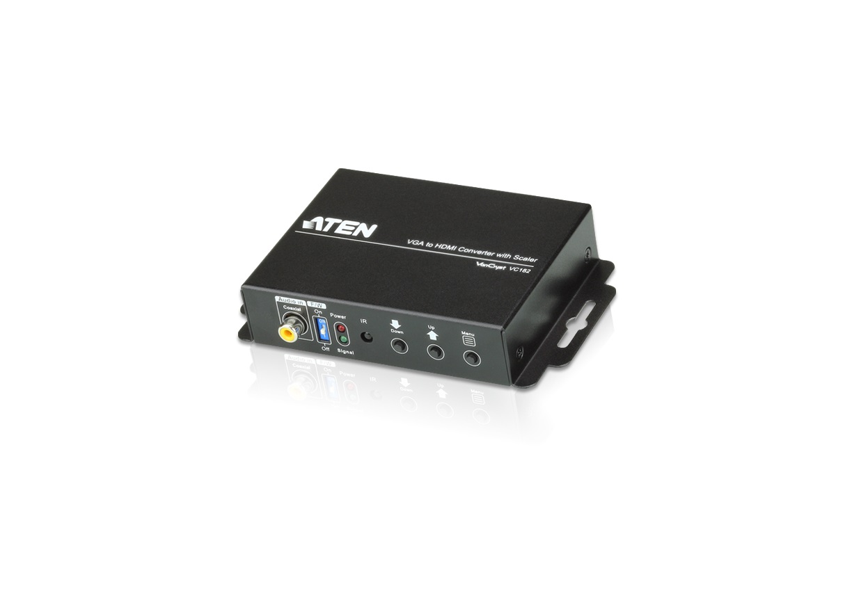 VC182 VGA转HDMI信号转换器(具备升频功能)提供简单且便利的方式可将VGA视频转成数字信号(HDMI)。VC182的高质量升频功能可通过视频分辨率的转换最佳化影像质量。